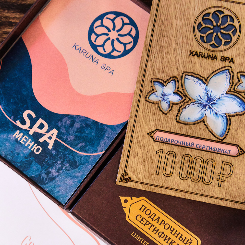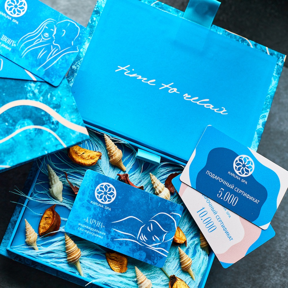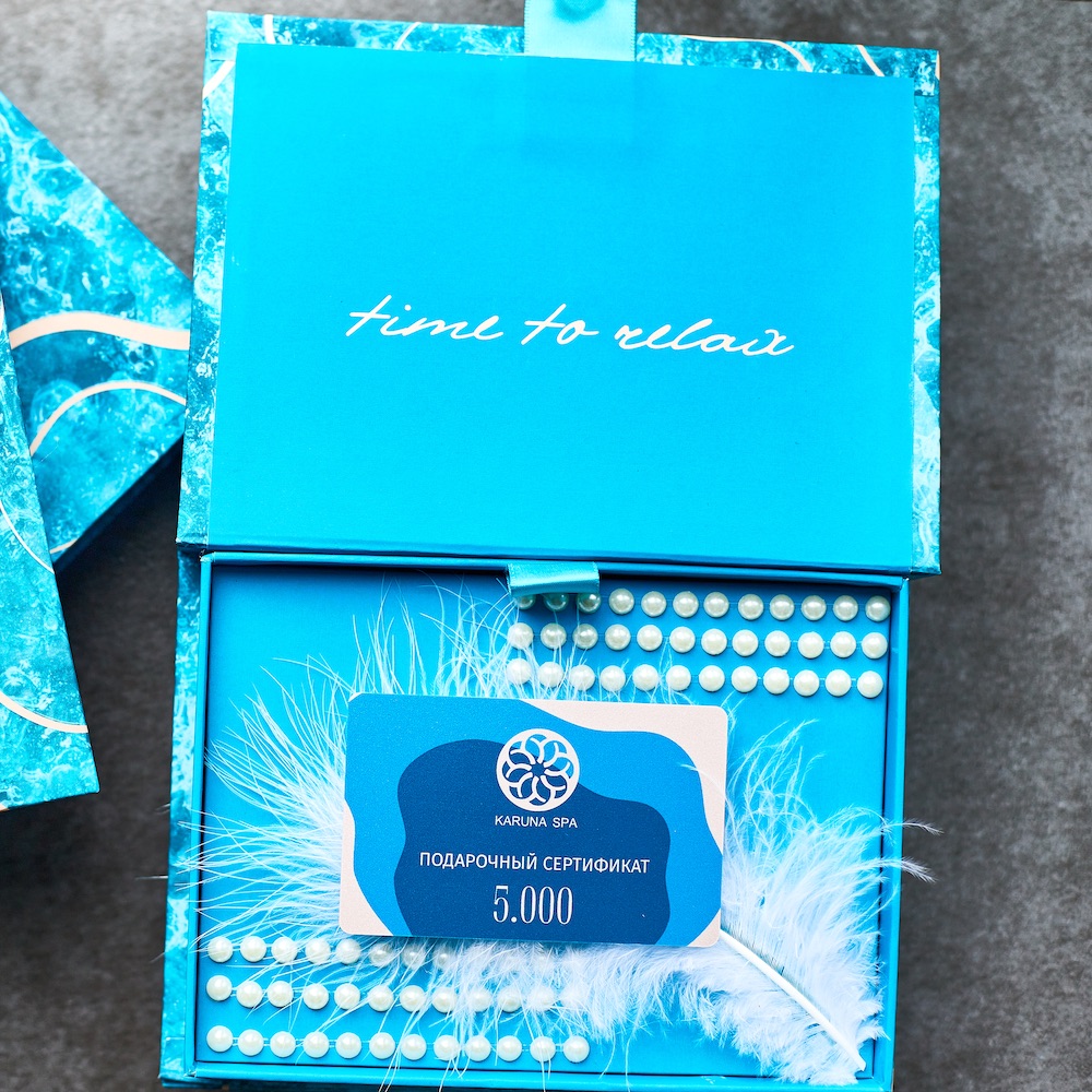 Поиск идеального и запоминающегося подарка часто заставляет понервничать и потратить много сил и времени. Подарочный сертификат или Абонемент в KARUNA SPA — отличный способ поздравить человека с любым событием в жизни, открыться в своих чувствах или просто оказать знак особого вниманиям. И если человека встречают «по одеждке», то подарок — по его упаковке. Поэтому Мы с особым вниманием относимся к оформлению наших сертификатов и абонементов. В KARUNA SPA Вы сможете выбрать не только подарок, но и упаковку на любой вкус и цвет: от классических открыток, конвертов до фантастической красоты шкатулок с потрясающим внутренним декором и неповторимыми тактильными ощущениями.